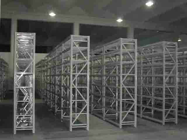 货架是现代化仓库提高效率的重要工具,因此货架行业也就应运而生了,而且市场需求分额越来越高。随着经济飞跃发展,外资企业大量涌进我国长江三角洲、珠江三角洲一带,不仅带动了当地经济的发展,还带来新的管理理念和管理技术。随着企业的不断增产扩容,企业仓库标准化、高效化也自然而然地提到日程上来了。货架泛指存放货物的架子。货架用于存放成件物品的保管设备。重型货架是使用最普遍的一种货架,每层承重超过500Kg的,名称正是由此得来。其有很好的拣取效率,可储存较重的物品,但储存密度较低。重型货架又叫托盘式货架,具有承重大,高度适应范围广泛,机械存取,选取效率高等特点,但空间利用率一般。广泛应用于制造业、第三方物流和配送中心等领域,既适用于多品种小批量物品,又适用于少品种大批量物品。此类货架在高位仓库和超高位仓库中应用最多(自动化立体仓库中货架大多用此类货架)。